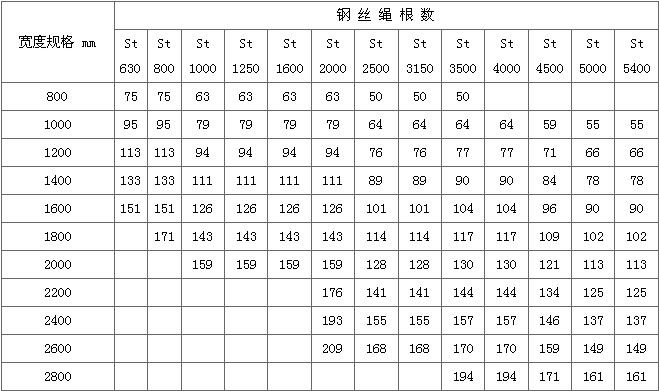 2.钢丝绳芯输送带主要技术参数: